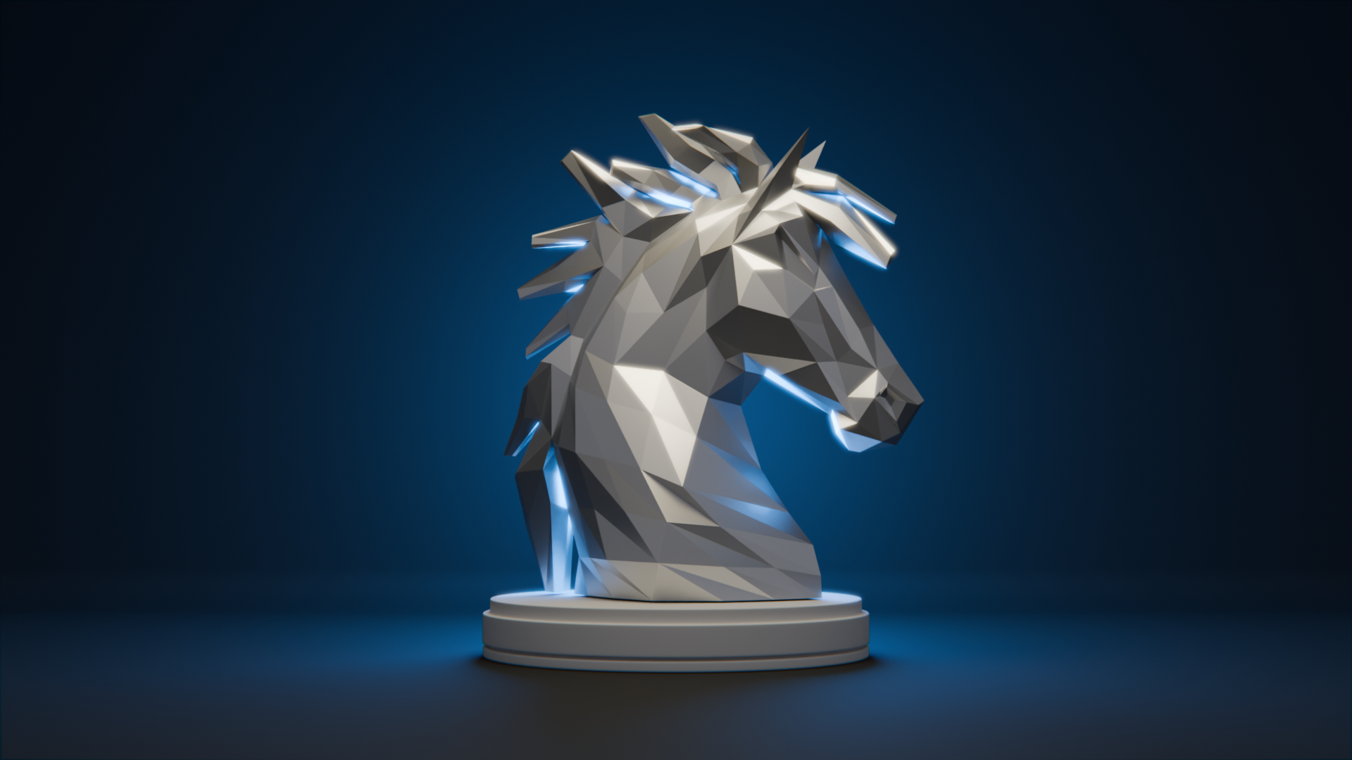 A sculptural award piece designed in a stylized horse form for His Highness Shaikh Nasser bin Hamad Al Khalifa, developed through 3D modeling and translated into a physical product.
